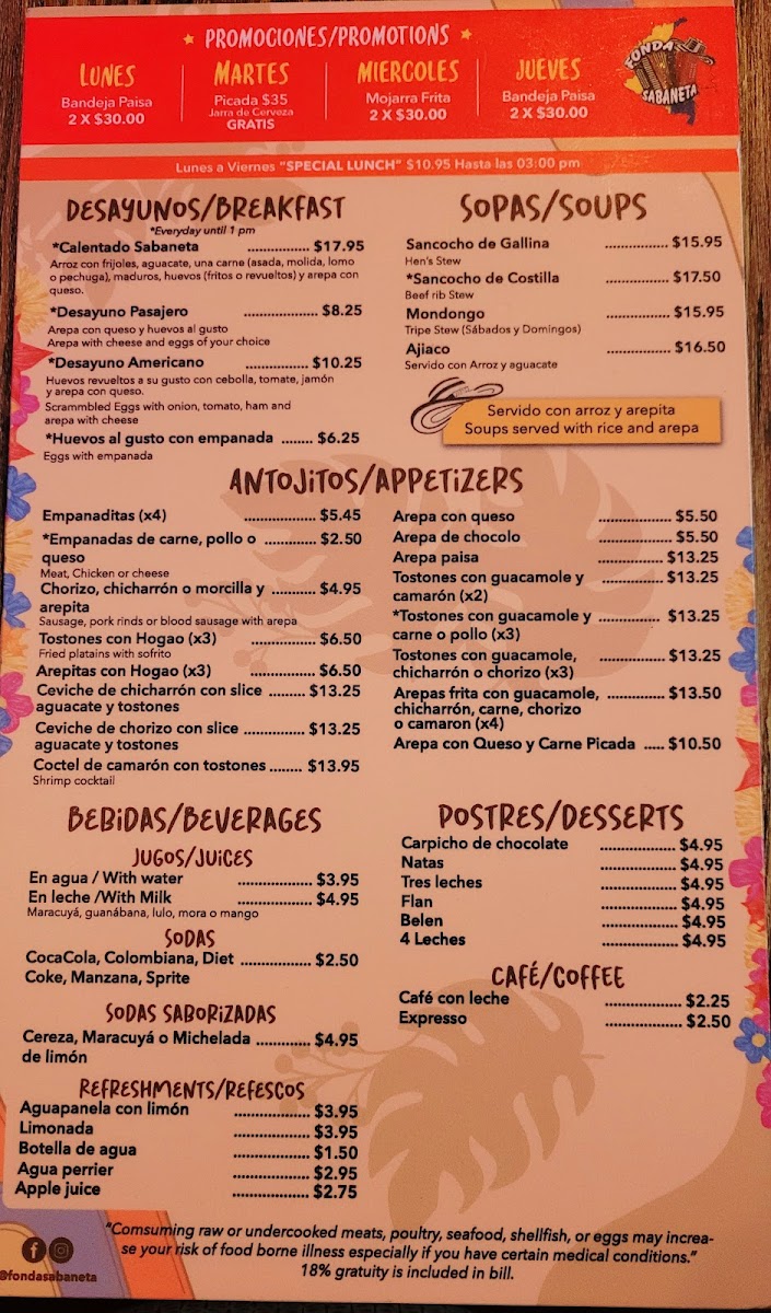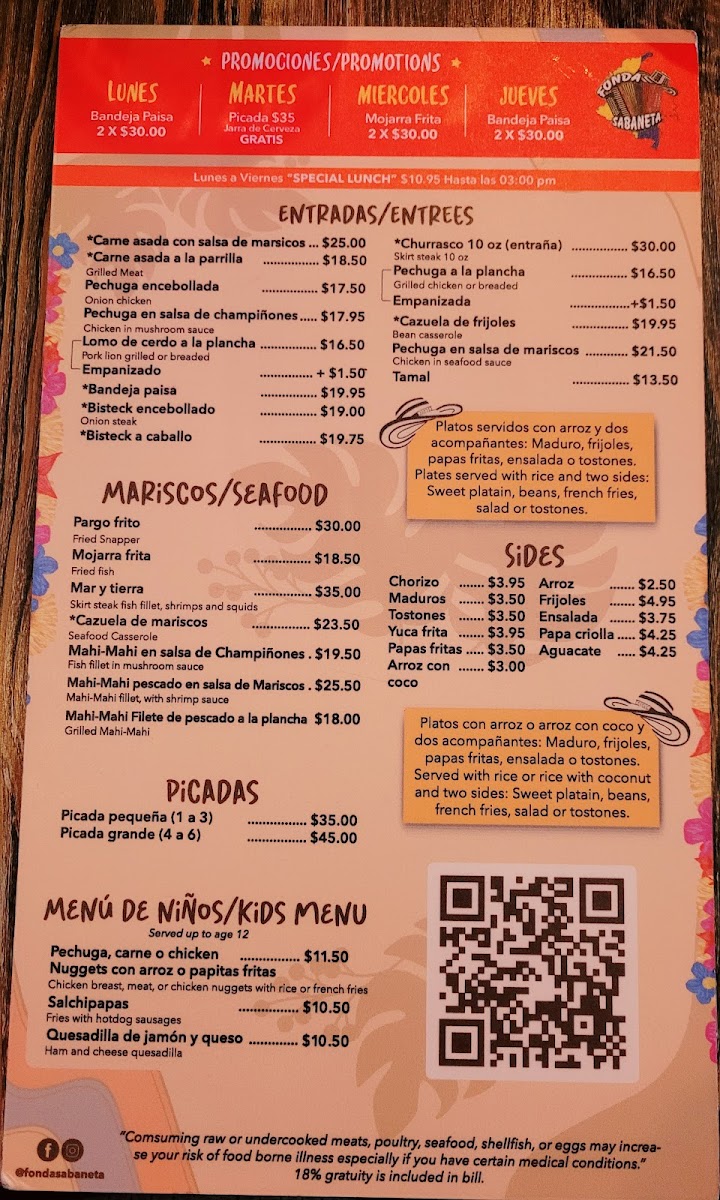 Welcome to Fonda Sabaneta West Flagler, a culinary gem nestled at 8766 W Flagler St, Miami. This vibrant Colombian restaurant captivates diners with its authentic flavors and welcoming ambiance. The menu features a variety of dishes that echo the rich traditions of Colombia, highlighted by favorites like bandeja paisa and cazuela de frijoles. The bandeja paisa, a hearty platter, showcases perfectly cooked meats and traditional sides that transport you straight to Colombia.